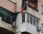 Полицай рискува живота си, качвайки се върху климатик, докато момчето бъде издърпано