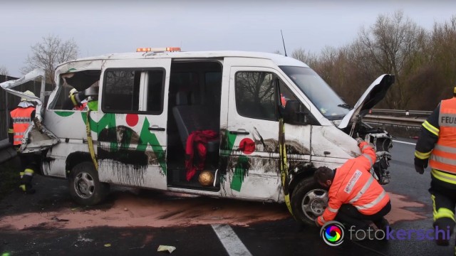 Шофьорът на другия участвал в инцидента автомобил разказва, че няколко души буквално са били изхвърлени от буса. Кадри в австрийски медии показват щетите по него, както и разхвърляния багаж на пътниците.