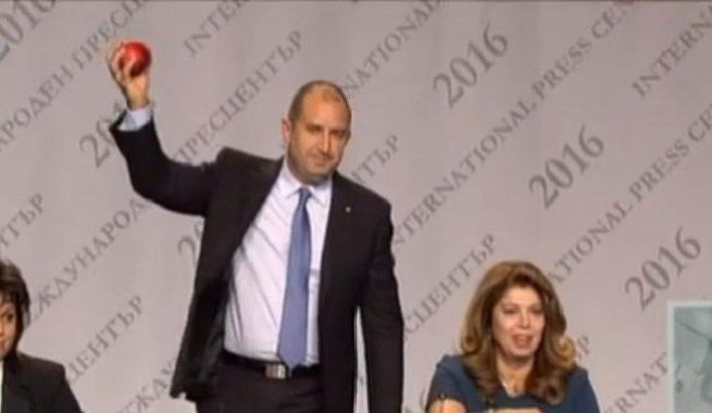 На пълен цирк станаха свидетели всички български граждани, които проследиха на живо пресконференцията на новия президент ген. Румен Радев. Журналистката Илияна Беновска хвърли ябълка по новия държавен глава, който умело я улови.