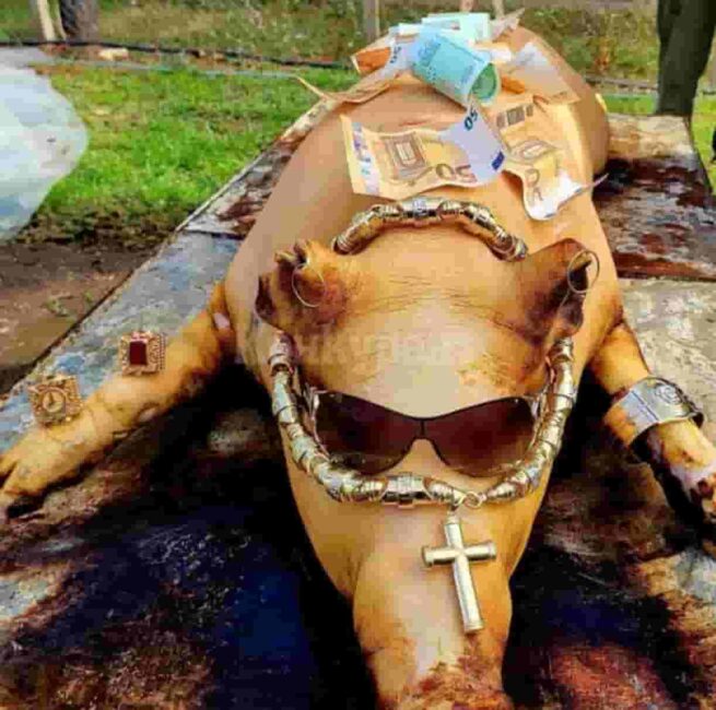 Богати цигани от Бяла Слатина окичиха пърлено прасе със злато за стотици хиляди лева