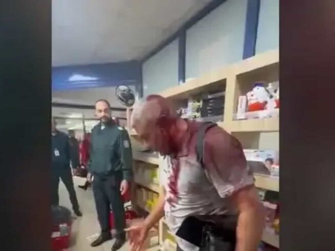 На пода се вижда голяма локва кръв. На втори клип се вижда пострадалият – целият окървавен и със силно пострадало ухо.