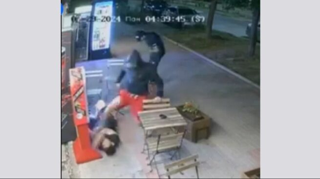 На клипа се виждат две момчета – едно, което първо заговаря жената, която сяда на една от масите. Към тях се приближава и 17-годишният младеж, който с два удара в главата сваля жената на земята. Следват множество удари и ритници в областта на главата и лицето ѝ.