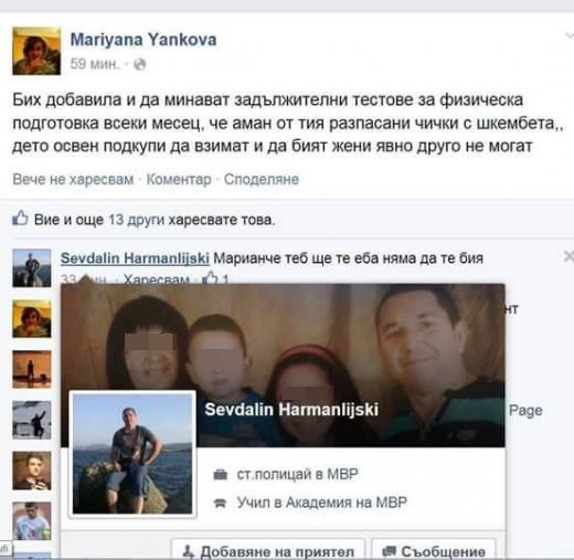 Ето буквалният текст на коментара на Марияна Янкова и написаното от „достойния“ МВР служител: