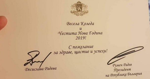 Представям ви новогодишната картичка на държавния глава на България за 2019 г. Не стига, че Десислава Радева също се е подписала, ами се е подписала преди президента?!