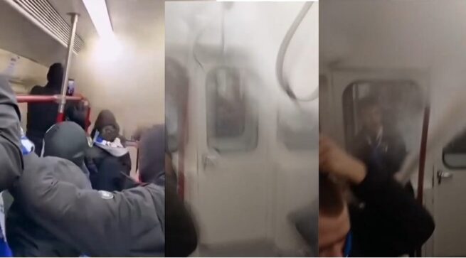 Фенове на Левски пръскали с пожарогасител в пълен вагон в метрото (видео)
