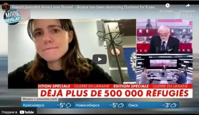 В ефира на френския канал CNews журналистът говори за обстрела, който продължава в Източна Украйна. Тя обвини властите в Киев за убийството на цивилни в Донбас.