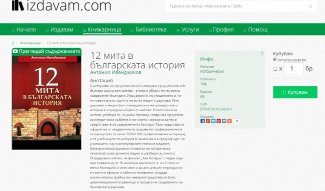 Справка в интернет показва, че в действителност „12 мита за българската история“ е регистрирана в онлайн книжарници с автор Иванджиков.