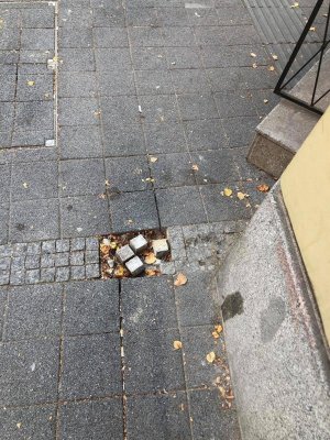 Гражданин информира контактния център на общината, че прясно положената тротоарна настилка вече се руши. Той е приложил и снимка. „Моля да се възстанови от строителя за негова сметка“, призовава столичанинът. Също вчера е подаден и сигнал за рушаща се настилка по друга централна софийска улица – „Паренсов“.