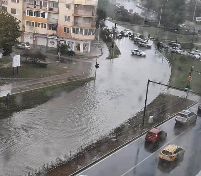 Водната стихия заля жилищни кооперации, автомобили и затвори движението по булеварда. Няма пострадали при инцидента, а от полицията са отцепили района.