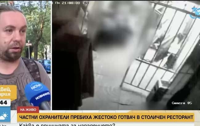 Готвач в ресторант в центъра на София се оплака от жесток побой, нанесен му от четирима служители на охранителна фирма. Той направи това в ефира на NOVA, в която като сигнал е пристигнало и видео с продължителност близо пет минути, показващо боя.
