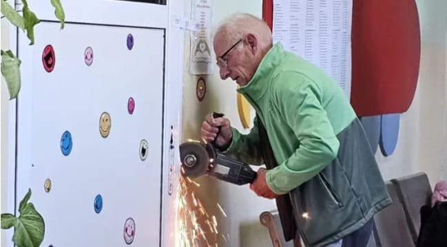 Врата на секционна избирателна комисия в Пловдив беше рязана с флекс машина в началото на изборния ден.