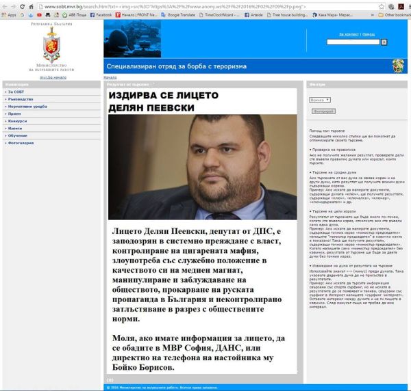 Извадка от сайта на МВР, докато бе хакнат: Издирва се лицето Делян Пеевски