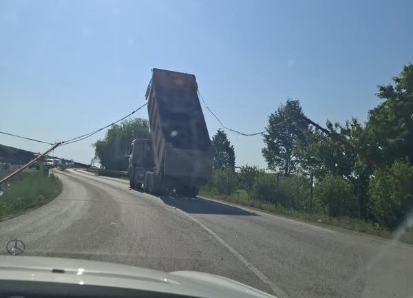 Каросерията на тежкия автомобил се е оплела в жици при качването от село Мрамор към Северната скоростна тангента. Това съобщиха очевидци във Фейсбук групата „Катастрофи в София“ и публикуваха снимка.