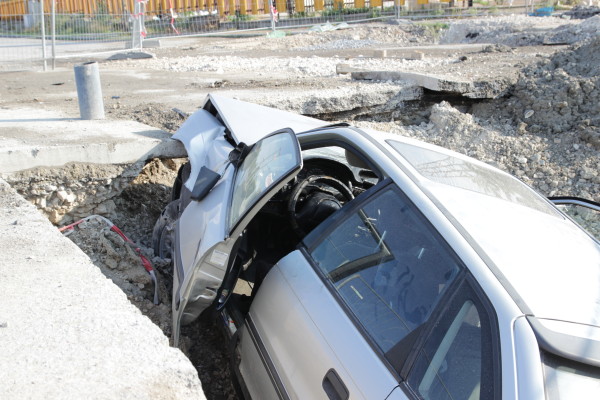 19-годишният шофьор на „Опел“-а не видял предупредителните знаци за преминаване в другата лента, помел загражденията и паднал с колата в изкопа. Той и спътникът му сами излезли от машината и звъннали на 112. Инцидентът се разиграл около 5.00 часа тази сутрин.