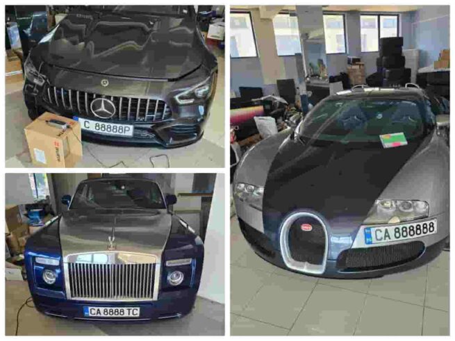 Става въпрос за „Ролс Ройс“, „Бугати Вейрон“ и „Мерцедес“. Властите издирват още пет скъпи коли, които също искат да конфискуват, но от тях до момента няма и следа.