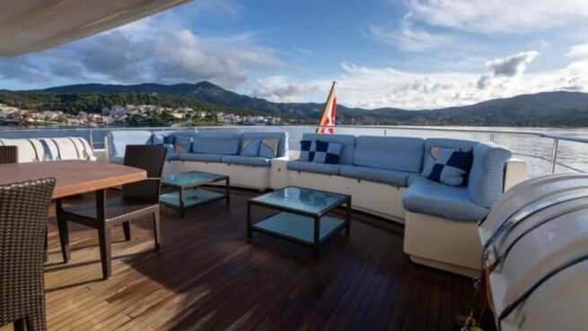 „Азимут 58 Лазур“ изглежда доста по-скромен, но също събира завистливите погледи на туристи и местни. Той разполага с три каюти, две тоалетни с душ и може да побере до 10 пасажери.