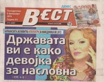 Македонците, които кандидатстват за български паспорти, има опасност да завършат в затвора или да вампирясат и да се разболеят от мегаломания. Тази прогноза споделя известната в цяла бивша Югославия ясновидка Клеопатра пред македонския вестник „Вест”, който е избрал нейната прогноза за челно заглавие на своя брой.