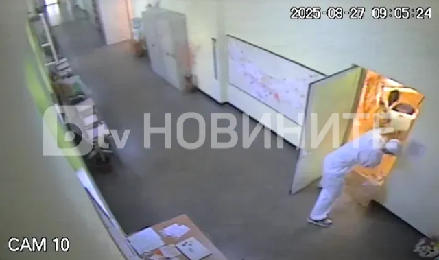 Кадри от охранителни камери, с които bTV разполага, показват как мъж влиза в общинската сграда, носейки две пълни кофи. Прокуратурата разследва случая