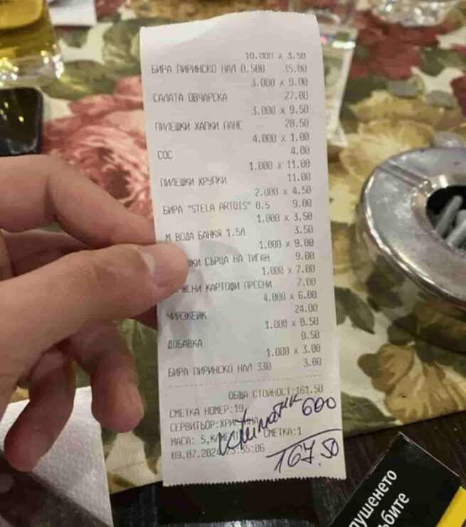 Касова бележка, на която бе дописана с химикал „такса климатик“ взриви социалните мрежи. Мнозина изразиха съмнения в автентичността на фискалния бон. Оказа се, че това не е фейк, а роден ресторантьор е решил да превърти играта, прибирайки на черно пари от клиентите си.