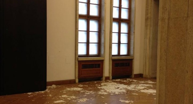 Мазилката в две от залите на чисто новата Национална галерия „Квадрат 500“ падна от тавана, алармираха гражданини във Фейсбук.