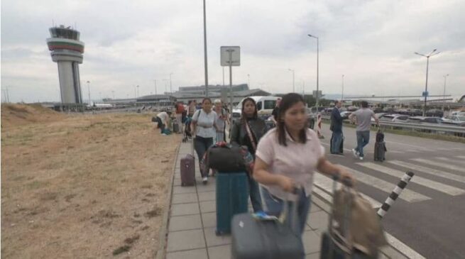 В разгара на летния сезон заради забранения достъп на коли до Терминал 2 на софийското летище „Васил Левски“ на пътниците им се налага да стигат пеша до входа на терминала с багажа си.
