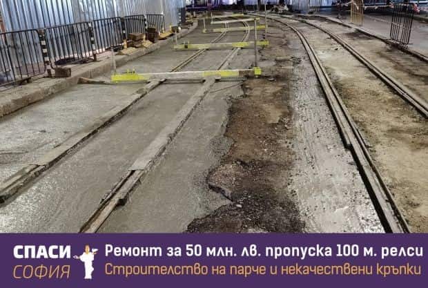 От „Спаси София“ уточняват, че въпреки многобройните им настоявания да бъде ремонтирана цялата отсечка, не са срещнали разбиране и 130 метра релси между ул. „Лавеле“ и бул. „Витоша“ не са били включени в първоначалния обхват на ремонта, въпреки лошото състояние на трасето.