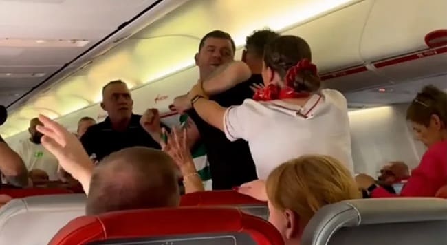 На кадри, заснети от пътник, се вижда как мъж с раирана риза е задържан от друг мъж с тъмна риза, докато другите пътници на самолета крещят. Мъжът с раираната риза започва да нанася удари по главата на другия мъж и го запраща на близката седалка, докато започва да нанася удари. След като се изправя на крака в претъпканата пътека – зрителите крещят и вдигат ръце, за да държат биещите се далеч от местата си – мъжът с раираната риза продължава да нанася още удари в главата на другия човек.