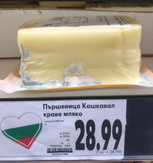 Клиентка от Пловдив се възмути от състоянието на кашкавал от витрината на голяма верига магазини. Жената уточнява, че продуктът струва 29 лв/кг, а стои в мухлясал във витрината на обекта, намиращ се бул. „Брезовско шосе” в Пловдив, съобщава Trafficnews.