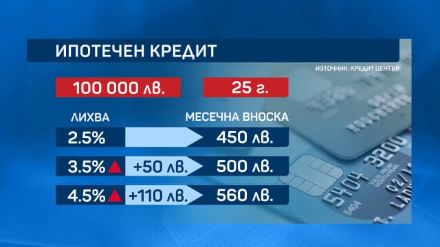 При изтеглени 100 хиляди лева при 2,5% лихва, каквато е средната в момента, вноските биха се увеличили с между 50 и 110 лв. месечно.