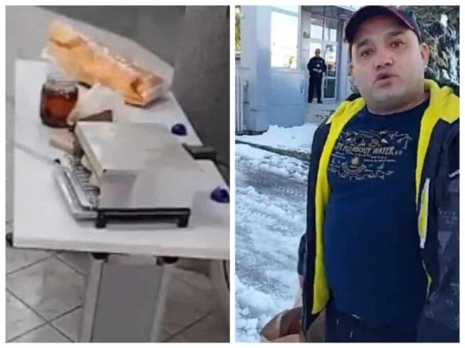 „Приятелю, сложи и на мен една филийка“, казва мъжът, който снима видеото.