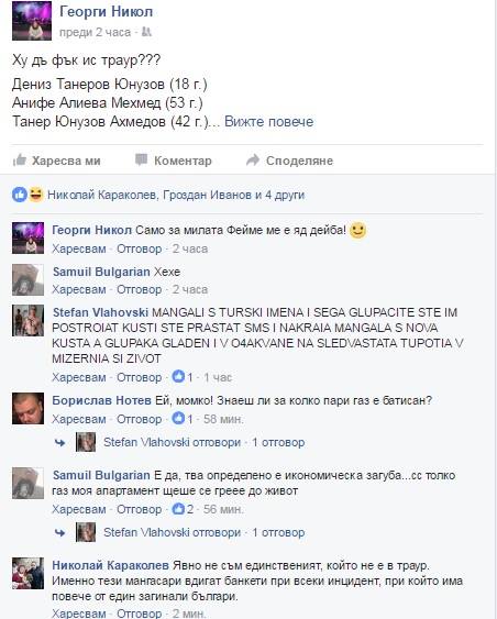 В деня на траур за жертвите от взрива в Хитрино, Георги Николов е написал: „ХУ ДЪ ФЪК ИС ТРАУР???“, изреждайки турските имена на загиналите.