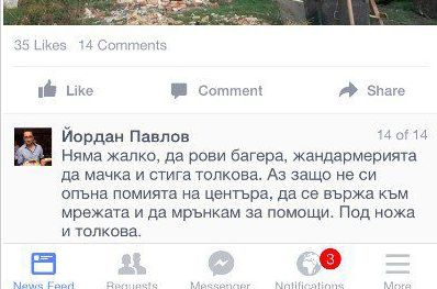 Йордан Павлов, младши експерт по архитектура в община Варна, написа по повод на събарянето на незаконните постройки в профила си: „Няма жалко, да рови багера, жандармерията да мачка и стига толкова. Аз защо не си опъна помията на центъра, да се вържа към мрежата и да мрънкам за помощи. Под ножа и толкова.“ Според част от коментарите това показва, че на много като него им е писнало от циганските безобразия, с които всички се съобразяват и предизвика много противоречиви реакции.