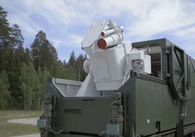 Това е модернизирана версия на системата „Пересвет“. Казват, че засега има само пет такива лазерни комплекса. Мобилната единица насочва към избраната цел мощен лазерен лъч, способен да унищожава дронове, ракети, самолети и кораби.