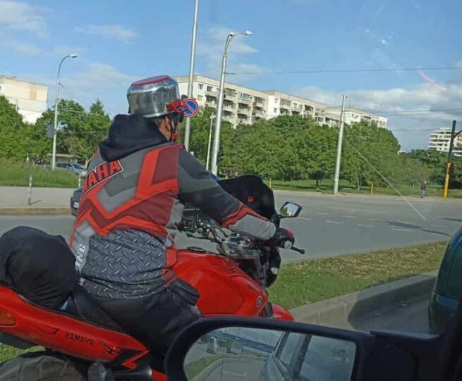 А един от тях успя да привлече погледите на всички, край които мина. Мотористът бил заснет из улиците на София, а на главата му имало необичайна каска. Тя била с формата на кухненска тенджера, привличаща вниманието с червеното си дъно. Приспособлението обаче било подготвено за новата функция – каишки го придържали за главата на мъжа.