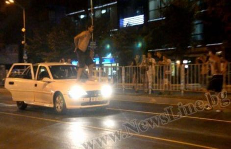 Изданието допълва, че мъжете са започнали да буйстват, да псуват и удрят по преминаващите автомобили.