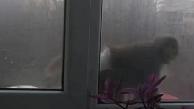 Кадрите, публикувани във Facebook групата на квартала, показват как маймуната преминава през прозорец на жилище и се хваща за електрически кабели. Случката е заснета в района на „Люлин 8“.