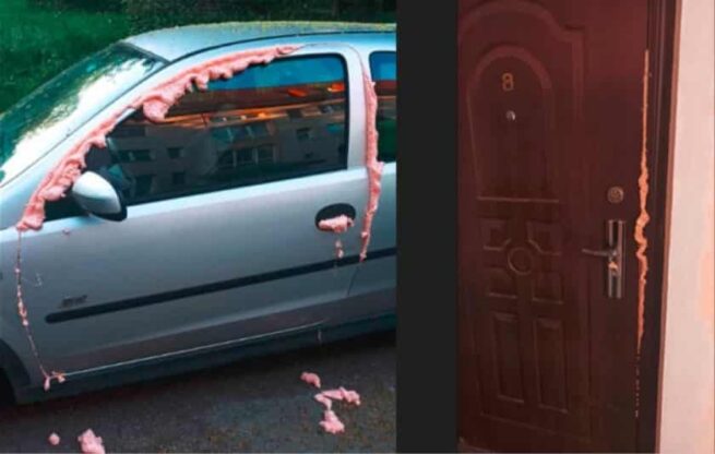 Заради спор за паркомясто: Мъж и жена залепиха с монтажна пяна колата и вратата на съседа си