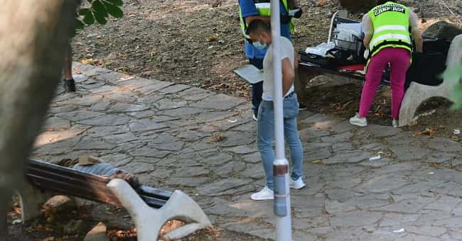Жертвата е на видима възраст около 65 години. Тя седяла на пейка, когато била ударена с каменна плоча по главата. Починала е на място. Самоличността й се уточнява.